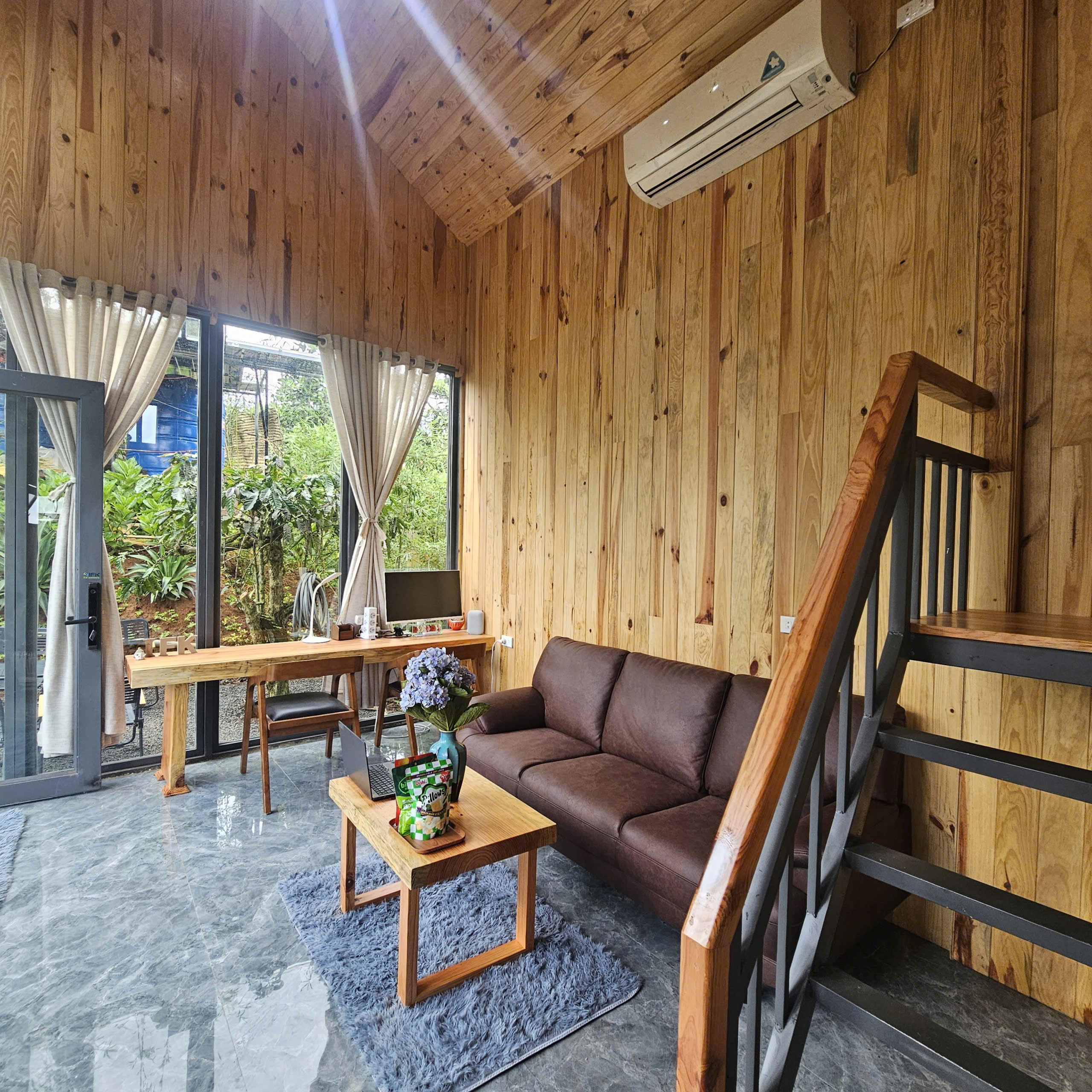 Villa Mộc Trà được thiết kế dành riêng cho cặp đôi hoặc gia đình nhỏ muốn tìm kiếm kỳ nghỉ yên tĩnh giữa núi rừng Di Linh. Với kiến trúc 1 gác lửng thoáng mát, phòng khách riêng và nội thất tinh tế, villa mang đến cảm giác ấm cúng nhưng không kém phần hiện đại. Từ ban công, du khách có thể ngắm nhìn khung cảnh cao nguyên xanh mát, tận hưởng không khí trong lành và khoảng thời gian trọn vẹn bên người thân.